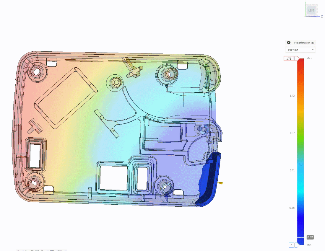 Echter, kunststof spuitgiet simulaties gaan nog verder. Ze simuleren het volledige productieproces van het onderdeel, inclusief zaken als vervorming, inval, doorlooptijden, vloeilijnen, en vulbaarheid.
