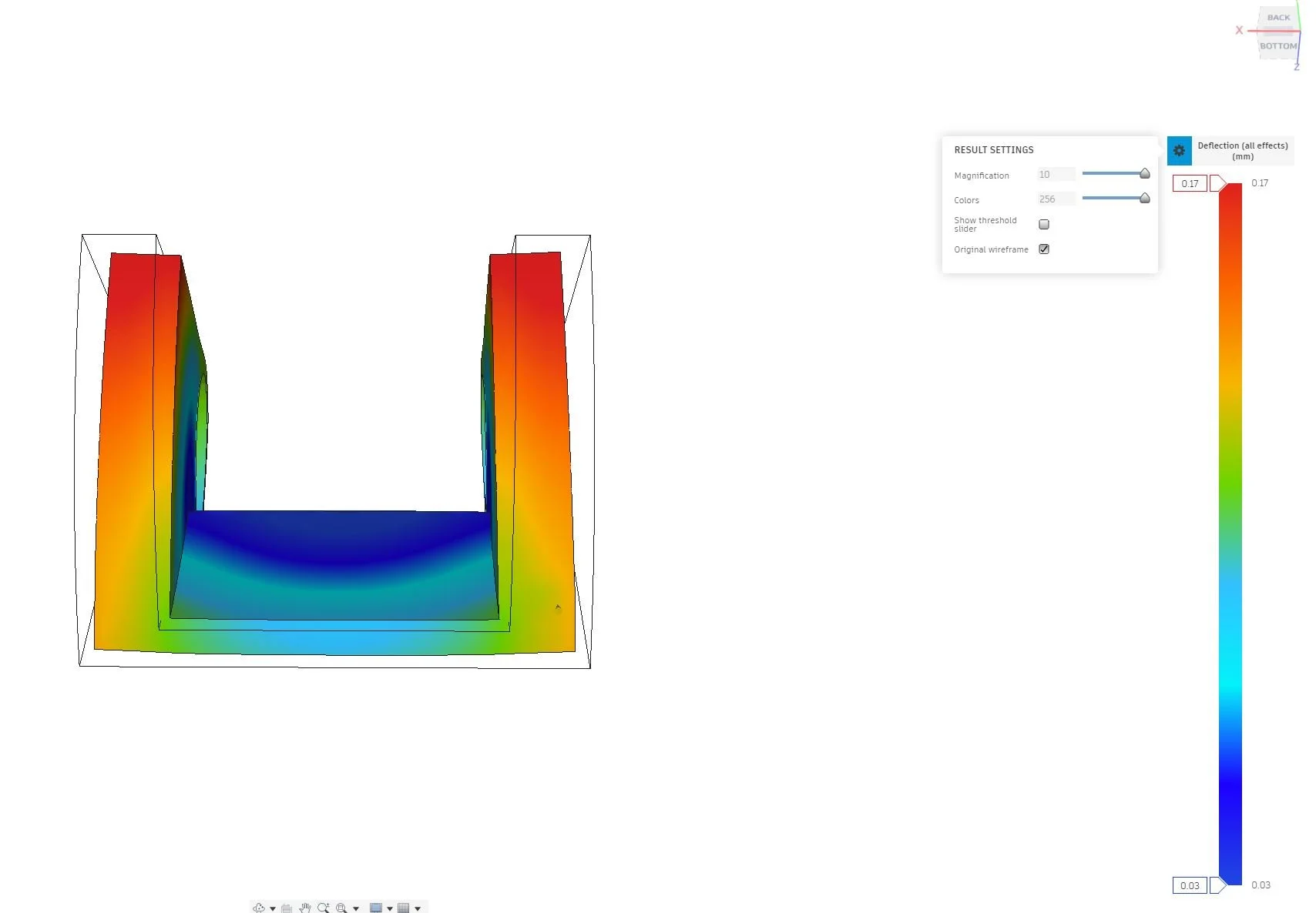 Het fysieke POM-onderdeel vertoonde als afwijking dat het kromgetrokken was. Dit kon tijdens de productie worden opgelost door het onderdeel af te laten koelen op een mal die het rechttrok. Het zou echter wenselijk zijn als deze stap niet nodig was. Hoewel er wanddikteverschillen werden waargenomen tijdens de engineering, zou dit geen grote problemen moeten veroorzaken. Simulaties geven ook aan dat het product vrij recht uit de matrijs zou moeten komen.